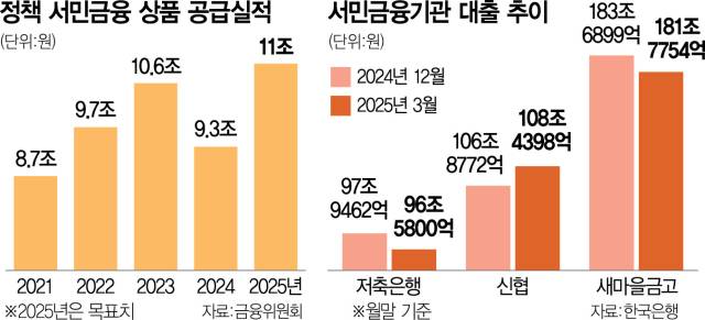 저리의 정책대출이 빠르게 늘어나면서 서민들의 급전 창구인 저축은행·상호금융·대부업체 대출이 줄고 있다. 정부가 민간 서민금융사를 시장에서 밀어내고 있는 셈인데 서민금융기관의 입지가 줄어들수록 정책자금 의존 현상이 더 심해지는 악순환이 심해질 수 있다는 우려가 나온다.
