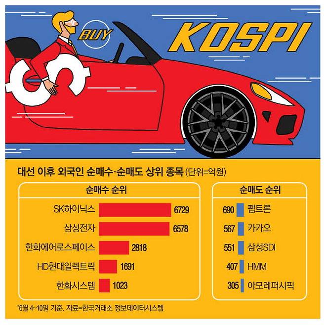 대선 이후 국내 증시에 외국인 투자금이 대거 몰리며 코스피·코스닥이 연일 급등세를 이어나가고 있다.