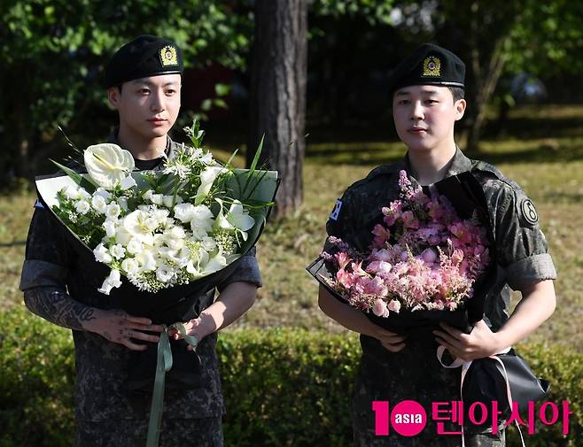 방탄소년단 지민-정국, 행복한 전역식...아름다운 미소[TEN포토+]