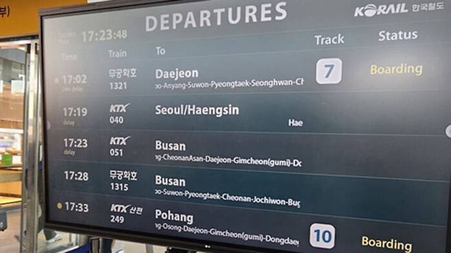 ▲ 열차 지연 소식 알리는 전광판