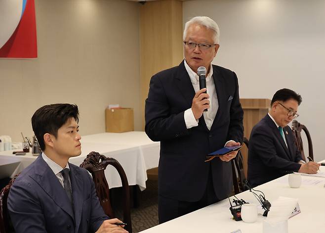 김용태 국민의힘 비상대책위원장은 이날 오후 국회 한 식당에서 국민의힘 상임고문단을 만났다. 이날 회의에는 최병국·김동욱·김종하·유흥수·권해옥·나오연·유준상·정의화·신경식·권철현 전 의원이 참석했다. 김무성 전 대표는 불참했다. 김문수 전 국민의힘 대선 후보는 이날 맏형의 별세로 회의에 오지 못 했다.