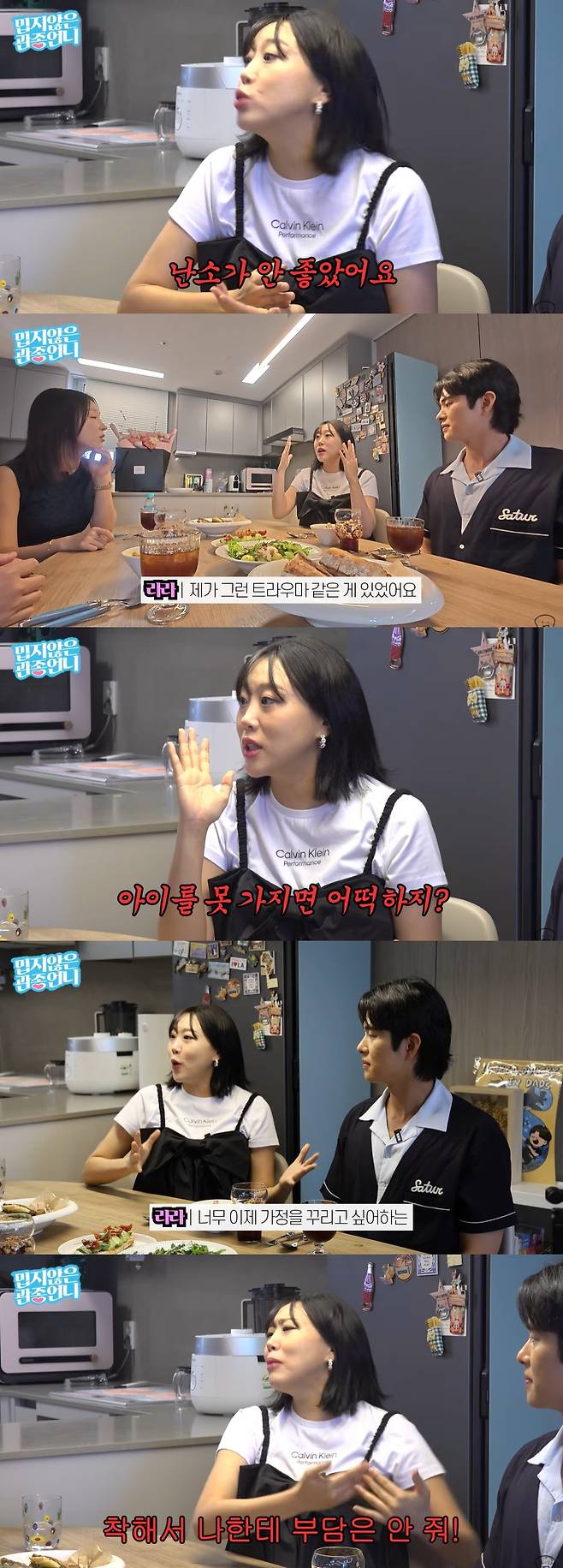임라라는 "20대 초에도 난소가 안 좋았다. 어렸을 때 복강경 수술도 하고. 트라우마 같은 게 있었다. '나 이러다가 아이를 못 가지면 어떡하지?'라는 두려움을 갖고 살았다"라고 말했다.