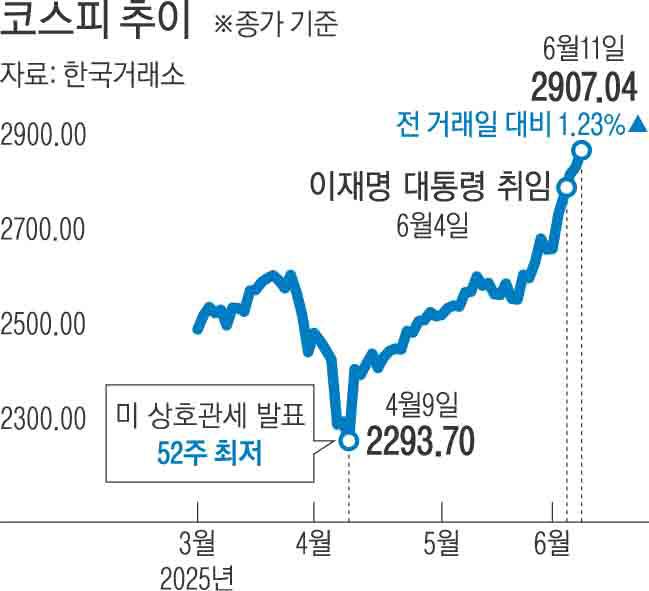 코스피 ‘이재명 랠리’에 3년 반 만에 2900선 넘겨…“배당 활성화”