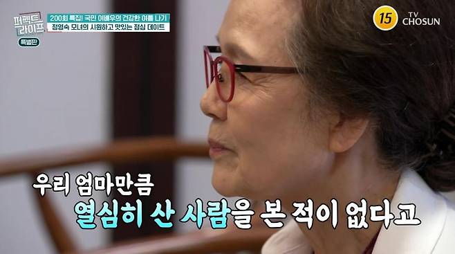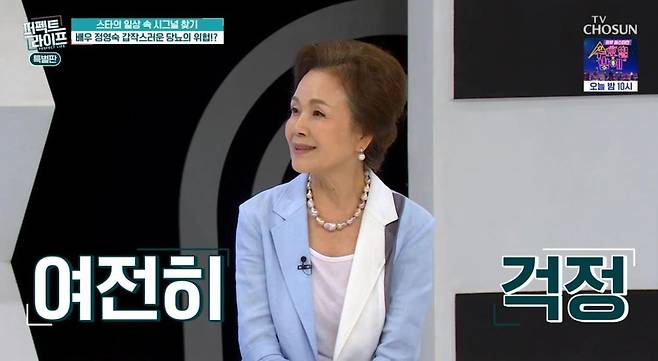 11일 방송된 TV CHOSUN '퍼펙트 라이프(이하 퍼라)'에서는 77세 나이가 무색한 정영숙의 건강미 유지 비결이 공개됐다.