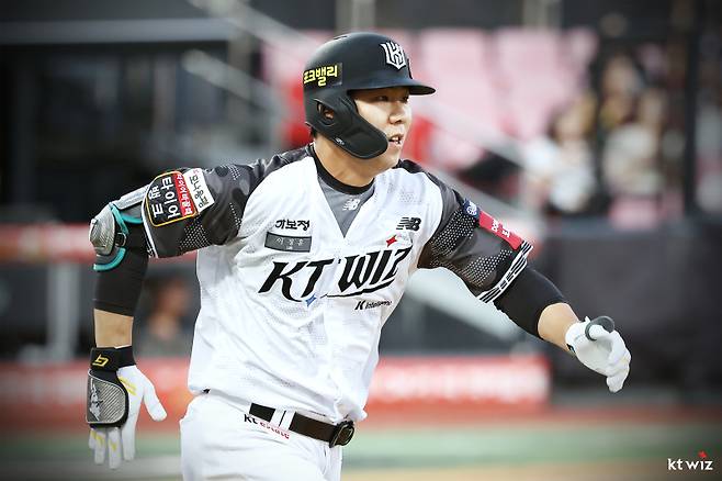 KT는 먼저 점수를 내줬다. 헤이수스가 3회 초, 1사 주자 없는 상황에서 장두성에게 볼넷을 내줬고, 2사 뒤 빅터 레이예스와 전준우에게 연속 안타를 맞았고 득점을 허용했다.