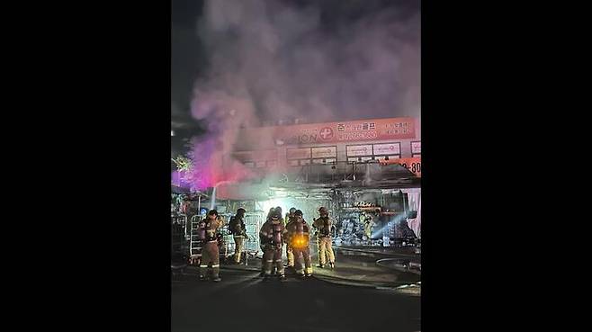 "마트 앞 천막에서 불이 났다"는 신고를 받고 출동한 소방당국은 약 30분 만에 큰 불길을 잡고, 밤 10시 28분쯤 완전히 불을 껐습니다.