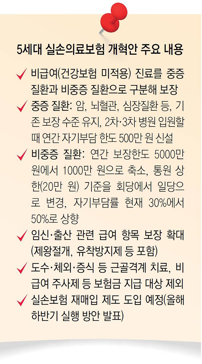 비급여 대상 중증도 따라 나눠… 비중증 보장 1000만 원으로 축소