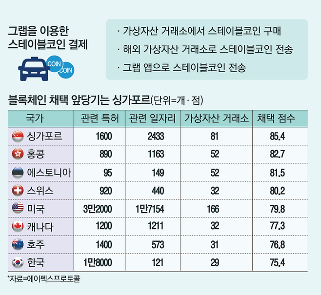 하지만 한국은 싱가포르와 달리 여전히 블록체인 산업에 대한 강력한 규제로 인해 결제 등 일상생활 속에서 활용하기가 극히 어렵다.