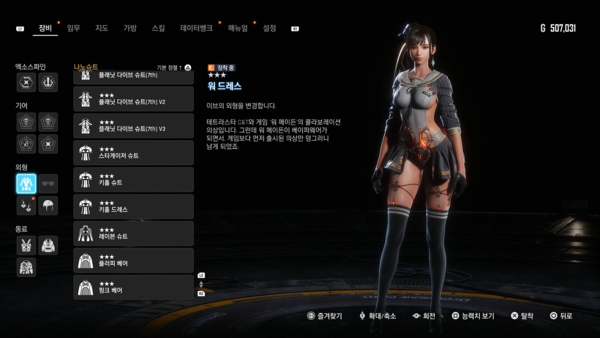 PS5 버전 출시 이후 정식 업데이트와 '니어 오토마타' DLC 추가로 다양한 나노슈트가 등장했다. 여기에 '승리의 여신: 니케' DLC까지 더해져, 니케 인기 캐릭터들의 의상을 이브가 직접 착용할 수 있게 됐다.