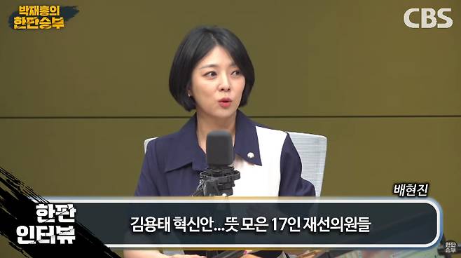 ◇ 박재홍> 국민의힘에서 원래 오늘 오후 의원총회를 열어서 김용태 비대위원장 거취와 혁신안을 논의할 예정이었는데요. 취소됐다고 합니다. 그리고 이런 가운데 국민의힘 17명의 재선 의원들이 김용태 위원장의 혁신안을 공개 지지했는데요. 그중 한 분이세요. 국민의힘 배현진 의원과 함께 말씀 나눠보겠습니다. 의원님 어서 오십시오.