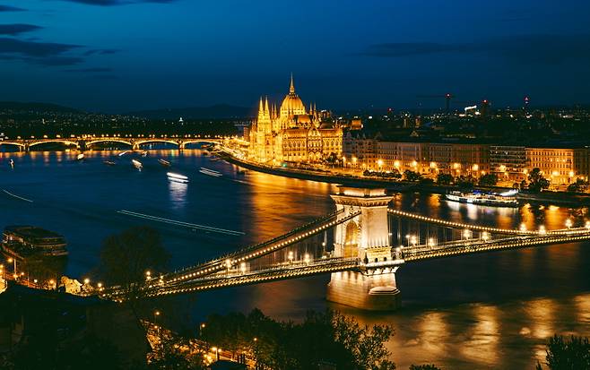 다음은 부다페스트를 '다뉴브강의 진주'라고 불리게 한 황금빛 야경. 건물을 비추는 조명도 야경에 적합하게 설치했다는데, 성능이 확실하다. 부다성에서 바라본 다뉴브강은 국회의사당, 어부의 요새, 세체니 다리와 어우러져 황홀감을 선사한다. 하늘은 짙은 남색으로 물들고, 건물은 눈부시게 빛나고 있다. 달리 설명할 길이 없는데, 부다페스트를 대변하는 가장 완벽한 장면인 건 확실하다.