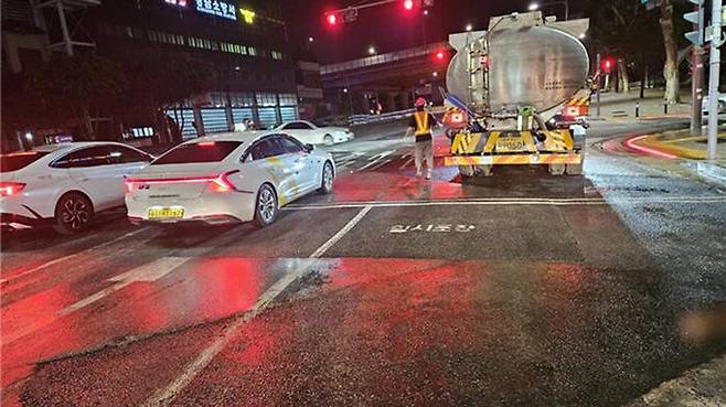 시는 전날 4차선 가운데 2차선을 통제해 복구 작업을 벌였으며 전날 자정 완료해 교통 통제를 해제했습니다.