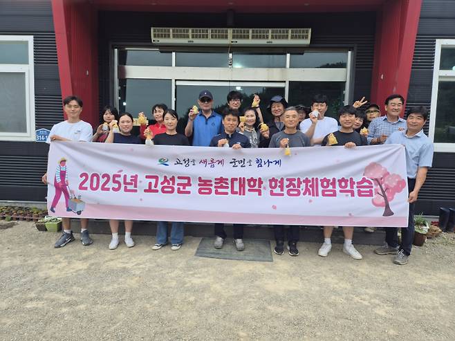 이번 현장실습교육은 고성군 농촌대학(선도농업인재양성 과정) 교육생들에게 농업 현장 경험을 제공하고 실습을 통한 농촌 체험 및 지역 농산물의 가치를 알리기 위해 마련됐다.