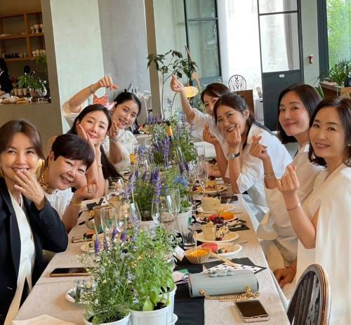 공개된 사진에는 최지우를 비롯해 신애라, 오연수, 유호정, 윤유선 등 오랜 시간 우정을 이어온 배우들이 한자리에 모여 다정하게 손하트를 날리는 모습이 담겼다. 화사한 꽃으로 꾸며진 테이블, 고급 디저트와 함께 밝은 톤의 드레스 코드까지 더해져 마치 드라마 속 장면을 방불케 했다.