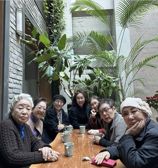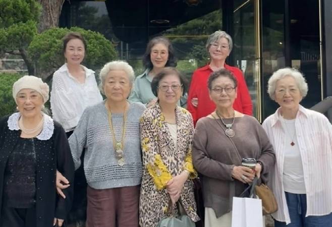 공개된 사진에는 백수련, 김영옥, 사미자, 강부자, 반효정 등 연기 인생 수십 년을 함께한 원로 배우들이 나란히 자리하고 있는 모습. 서로 손을 맞잡은 채 미소 짓는 모습만으로도 깊은 연대와 품격이 느껴지며 한 편의 시대극을 떠올리게 했다.
