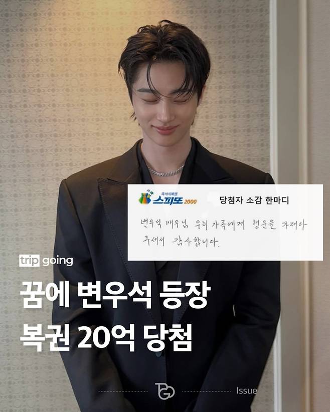 배우 변우석이 자신의 꿈을 꾸고 복권에 당첨된 사연이 전해지자 화답했다.
