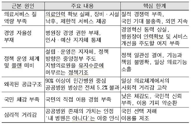 | ▲ 공공병원 기여도 인식과 이용의 상충 원인과 핵심 한계 |