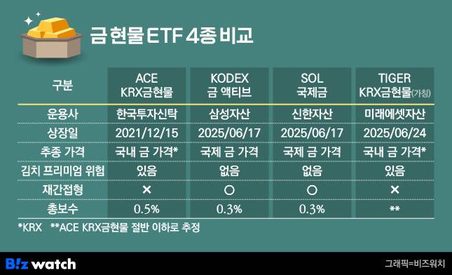 미래에셋자산운용의 상품은 한국거래소(KRX) 금현물 지수를 추종하는 방식으로, 기존 'ACE KRX 금현물'과 유사한 구조다.