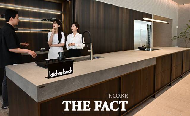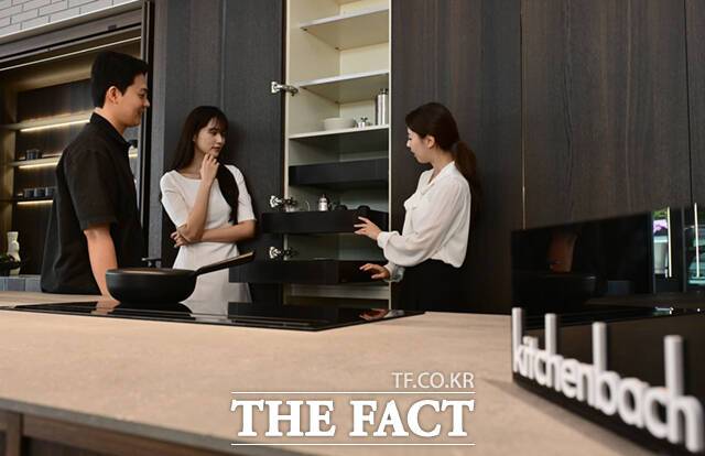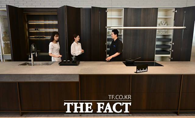 [더팩트ㅣ이새롬 기자] 12일 서울 강남구 한샘 플래그십 논현 매장이 리뉴얼 오픈하며 프리미엄 키친 브랜드 '키친바흐'를 선보인 가운데, 고객들이 제품을 살펴보고 있다.