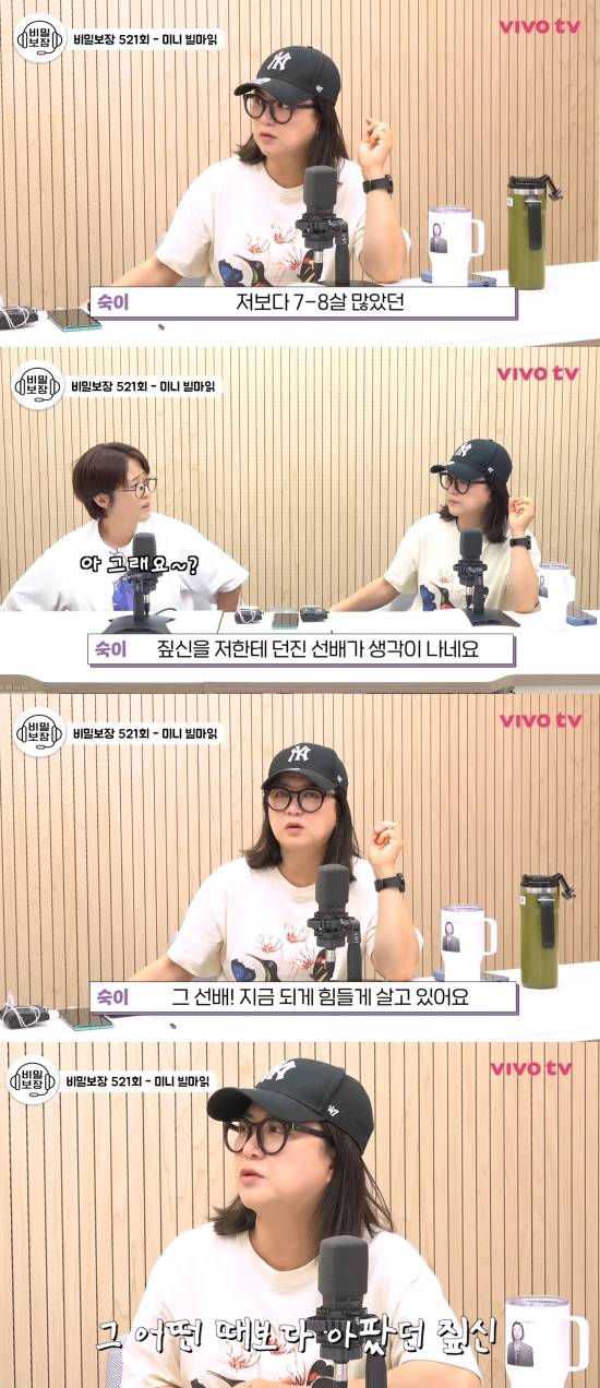 심지어 10살이나 어린 사연자에게 진지하게 아르바이트를 그만둘 것을 제안한 김숙은 "20살에 KBS 들어갔을 때 저보다 7~8살이 많았던 선배가 생각난다"고 말을 꺼냈다.