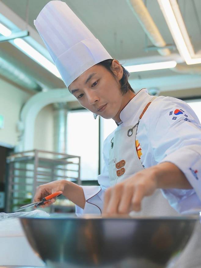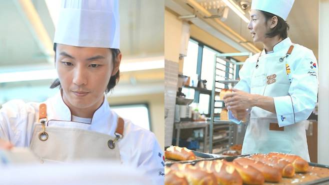 공개된 사진 속 그는 제과제빵사 복장을 하고 제빵에 몰두하는 모습이다. 흰 위생 모자와 셰프복, 앞치마까지 완벽하게 갖춰 입은 윤시윤은 진지한 눈빛으로 반죽을 손질하고 빵을 오븐에 굽고 있었다.