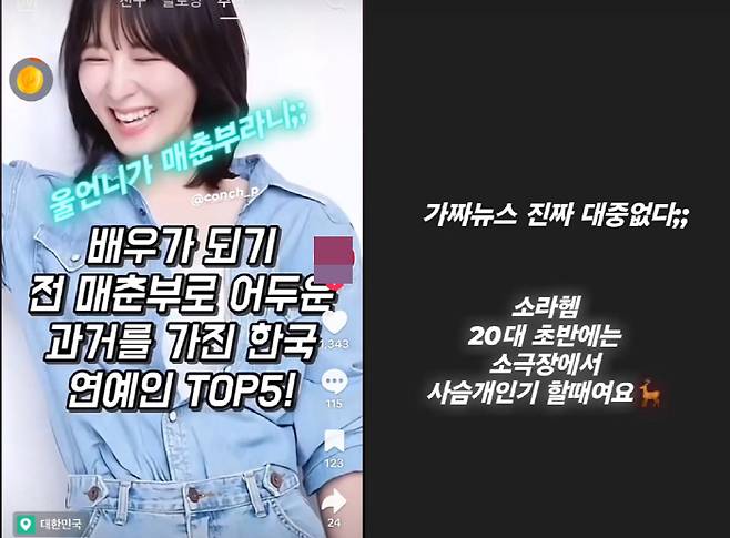 해당 캡처에는 '배우가 되기 전 매춘부로 어두운 과거를 가진 한국 연예인 TOP5!'라는 자극적인 문구와 함께 박소라의 사진이 포함돼 있다.