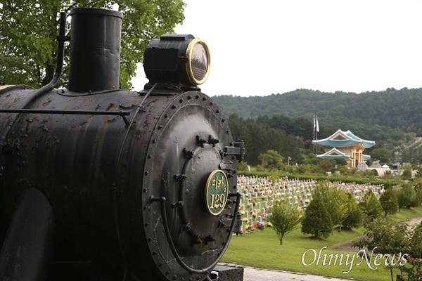 | ▲ 국립현충원 야외전시장에서는 대전역 물자 수송에 투입된 6.25참전 증기기관차가 전시되어 있다. 하지만 당시 증기기관차 '미카3-219호'와는 다르게 ‘미카-129호’를 전시해 놓고 있다. |