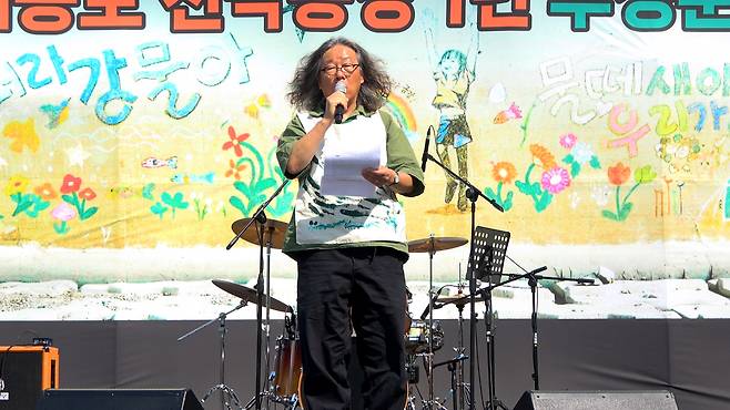 | ▲ 세종보 천막농성 1년 투쟁문화제에서 문성호 보철거시민행동 공동대표가 선언문을 읽고 있다. |