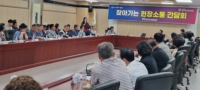 | ▲ 울산시 자치경찰위원회가 12일 울주군 언양읍 행정복지센터에서 50여 명이 모인 가운데 현장소통간담회와 연계해 전자금융사기(피싱) 피해 예방을 위한 시민 현장 교육을 가졌다. |