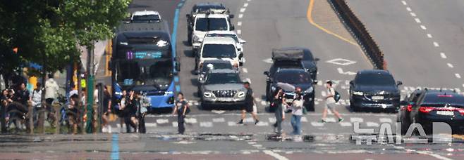 [인천=뉴시스] 전진환 기자 = 전국이 낮 최고 30도 안팎의 무더운 날씨를 보인 12일 오후 인천 남동구 구월로 아스팔트 도로에 지열로 아지랑이가 피어 오르고 있다. 2025.06.12. amin2@newsis.com