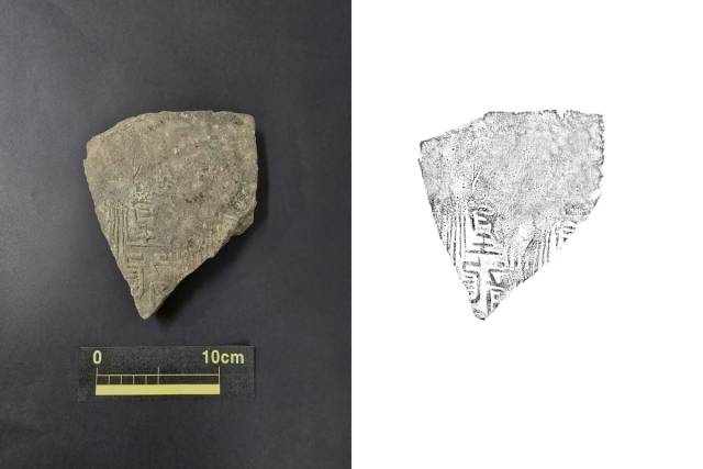 이 글자 형태는 황룡사 남문지 동편 건물지와 강당지 북동편지구 출토품, 동아대 박물관 소장품 등과 같은 것이다.