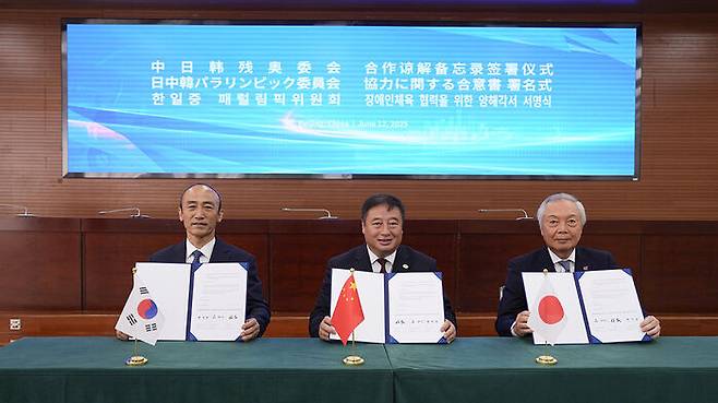 대한장애인체육회는 오늘(12일) 중국 패럴림픽위원회, 일본 패럴림픽위원회와 한중일 패럴림픽 스포츠 발전을 위한 업무협약(MOU)을 체결했습니다.