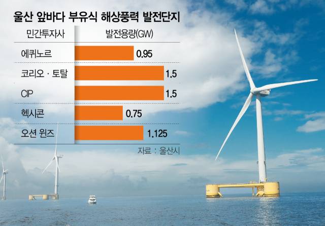 현재 울산 앞바다에는 총사업비 약 43조 원을 투입하여 2031년까지 5.8GW 규모의 세계 최대 부유식 해상풍력 발전단지 조성을 목표로 5개 컨소시엄 사업자가 12개 부유식 해상풍력 발전사업을 추진하고 있다. 에퀴노르의 ‘반딧불이 프로젝트(0.75GW)’ 외에도 영국 GIG·프랑스 토탈·한국 SK에코플랜트가 합작한 코리오 토탈(1.5GW), 덴마크 CIP(1.5GW), 스웨덴 헥시콘(0.75GW), 스페인·노르웨이의 오션 윈즈(1.125GW) 등이 참여하고 있다.