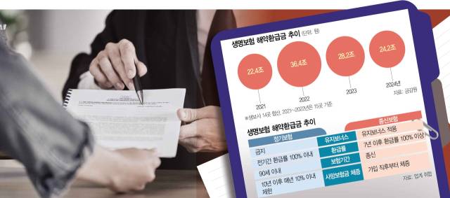 하지만 경영인 종신보험은 기본적으로 종신보험이기 때문에 금감원의 ‘환급률 100% 이내’ 규제를 받지 않는다. 꼼수 영업이라는 얘기가 나오는 배경이다. 한 업계 관계자는 “이 상품을 법인계약을 통해 팔 경우에는 환급률·수수료·법인세 효과까지 겹치게 된다”며 “이 경우 가입 3년 뒤 계약을 해지해 차익을 보는 거래를 할 여지도 있다”고 설명했다.