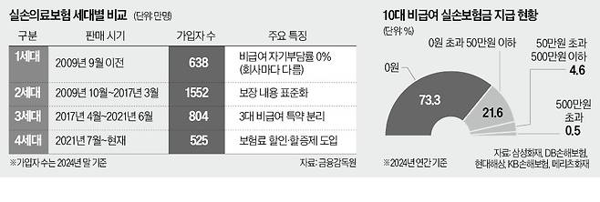 실손보험은 출시 시기에 따라 1~4세대로 구분된다. 금융감독원에 따르면 작년 말 1세대와 2세대 실손보험 가입자는 각각 638만 명, 1552만 명에 달한다. 전체 실손보험 가입자의 62.2%에 해당한다.