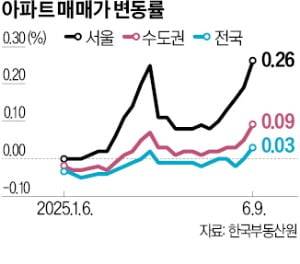 금리 인하 기대 속에 새 정부에서 경기 부양을 위해 유동성 공급을 확대할 것으로 예상돼 매물이 줄고 매수세가 몰리고 있다. 내수경기를 활성화해야 하는 정부로서는 서울 집값 급등세가 부담스러울 수밖에 없다. 토지거래허가구역뿐 아니라 조정대상지역 카드를 꺼내 들 수 있다는 진단이 나오는 배경이다.