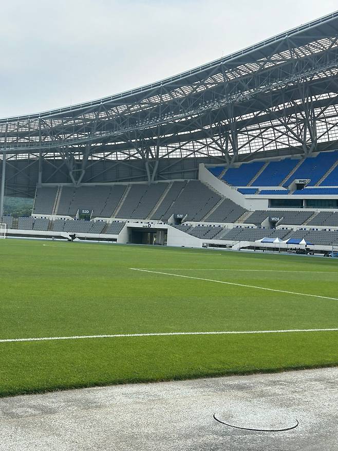 경기 시작은 오후 8시로 예정돼 있어 관중석은 아직 비어 있었지만 본격적인 경기를 앞두고 경기장 곳곳에서는 뜨거운 에너지를 느낄 수 있었다. 경기장 내에는 ‘FC슈팅스타’ 선수단 벤치와 더불어 이날 맞대결을 펼칠 ‘춘천시민구단’ 벤치석도 함께 마련돼 팽팽한 대결의 분위기를 예고했다.