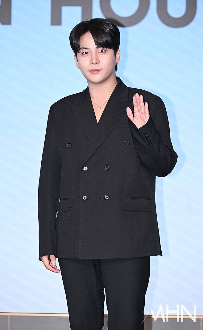 그룹 에이티즈(ATEEZ) 종호가 11일 오후 서울 마포구 호텔 나루 서울 엠갤러리에서 진행된 미니 12집 앨범 'GOLDEN HOUR : Part.3' 발매 기념 기자간담회에 참석해 포토타임을 갖고 있다.