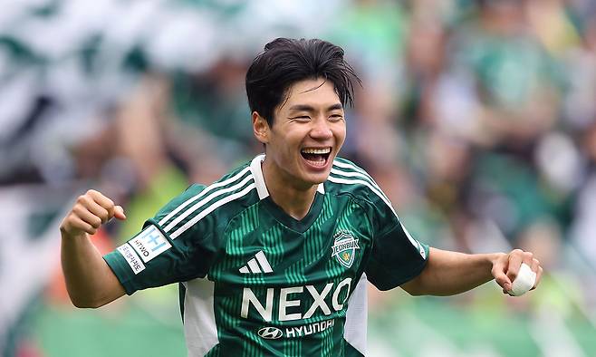 한국이 2026 국제축구연맹(FIFA) 북중미 월드컵 본선행을 확정 짓는 경기에서 눈부신 활약을 펼친 선수 중 하나로 전진우(전북 현대·사진)를 꼽을 수 있다.