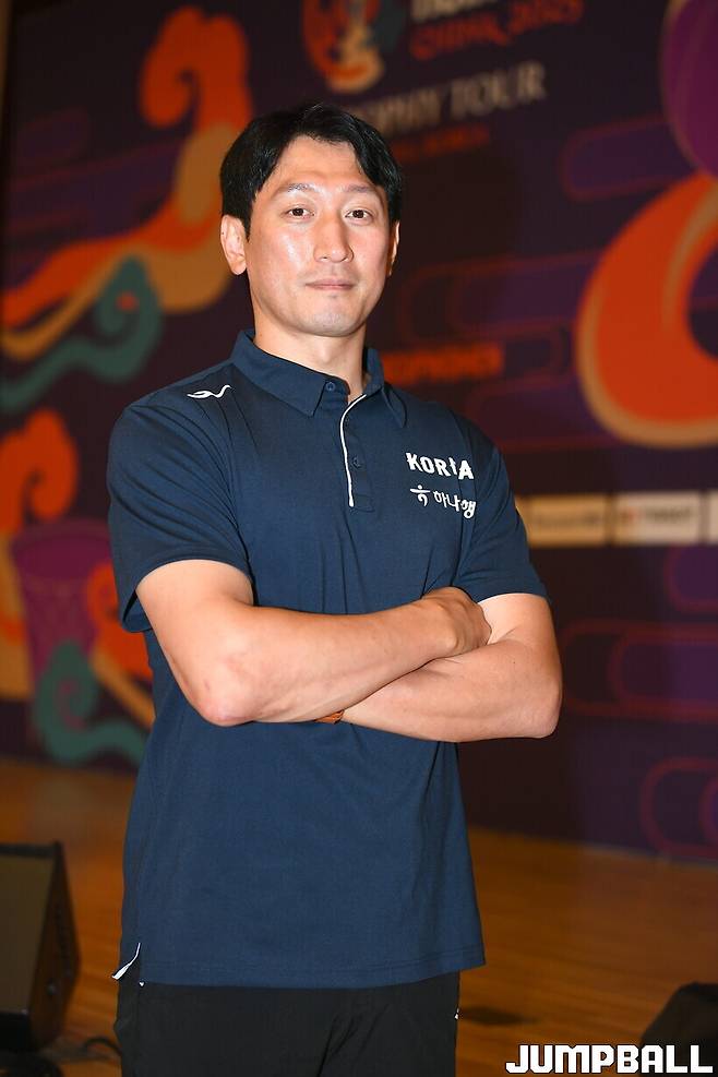 12일 진천선수촌 챔피언하우스 3층 강당에서 열린 2025 FIBA(국제농구연맹) 여자 아시아컵 트로피 투어 및 미디어데이. 코칭 스태프와 선수단 사이에 반가운 얼굴이 눈에 띄었다. 지난 시즌까지 인천 신한은행에 몸담았던 이휘걸 코치였다. 그는 어드바이저로 대표팀에 합류해 선수단을 지도하고 있다.