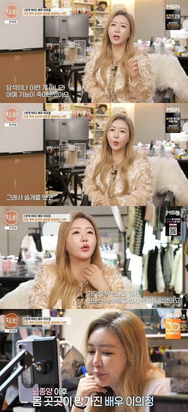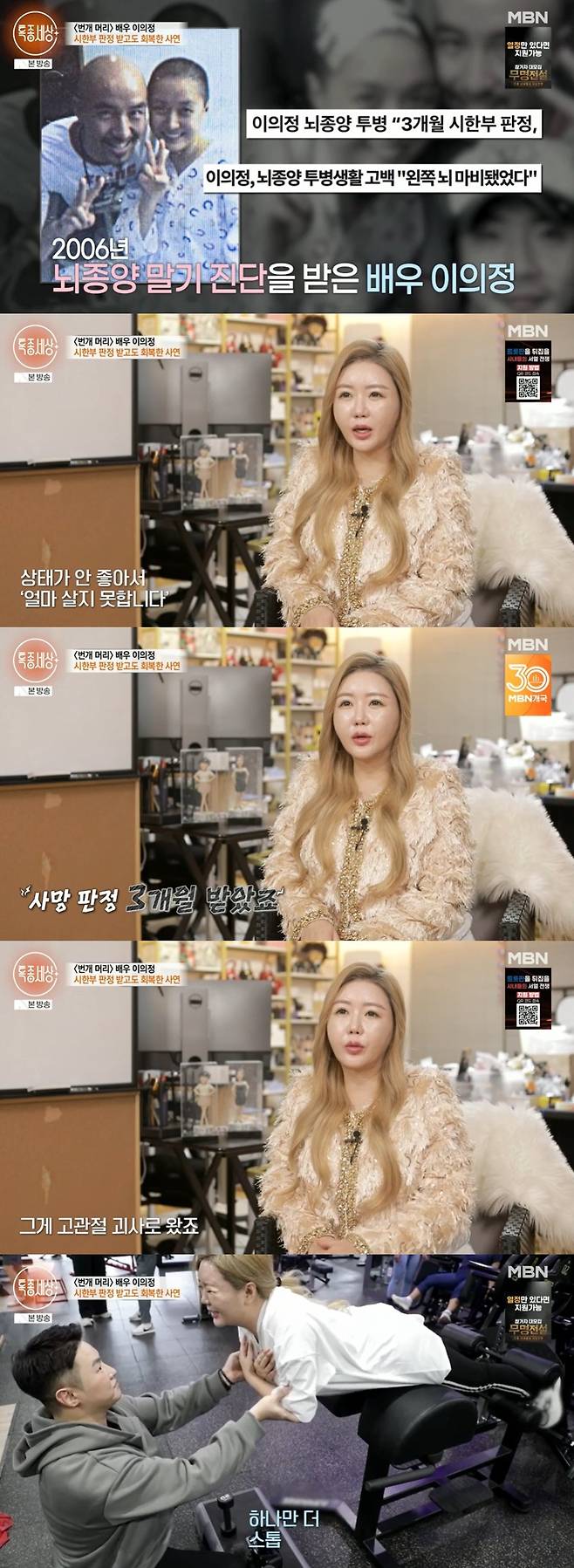 배우 이의정이 뇌종양 이후 몸의 곳곳이 망가졌다 전했다.