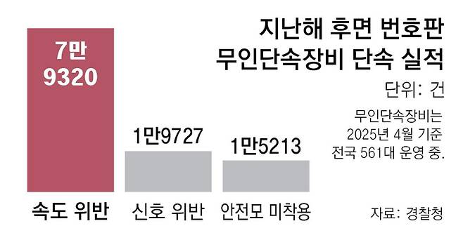 [2000명을 살리는 로드 히어로] 동아일보-채널A 2025 교통안전 캠페인 〈5〉 배달 라이더의 위험한 질주 횡단보도 신호 위반-인도 위 주행 등… 경찰 단속 90분간 운전자 6명 붙잡혀 “도주해도 사고 우려에 추격 어려워”… 뒷번호판 단속 장비 전국 561개뿐 경기 252대-제주 1대 지역 편차 커… 전문가들 “2500대는 있어야 효과”