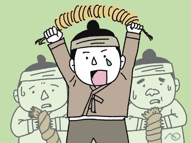 새해가 밝은 다음 날 아침, 주인은 "작년 한 해 다들 수고 많았다. 이제 너희들이 꼰 새끼로 이 엽전을 마음껏 끼워 가거라"고 말했습니다.