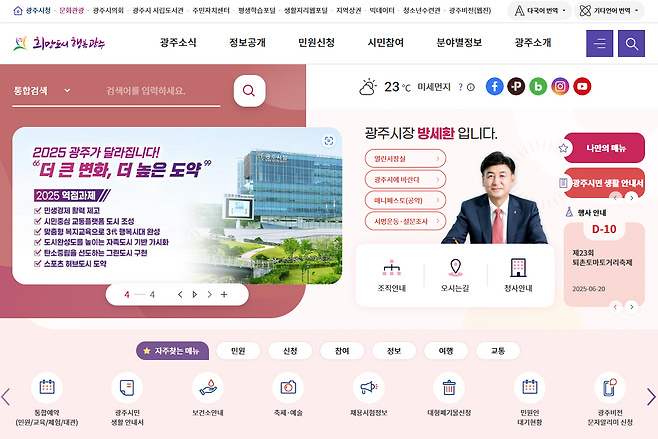 [헤럴드경제=박준환 기자]광주시(시장 방세환)가 시민들이 보다 쉽고 편리하게 행정정보를 이용할 수 있도록 시 홈페이지 기능 개선 사업을 완료했다.