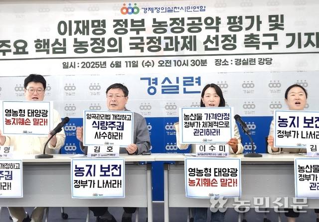 경제정의실천시민연합이 11일 서울 종로구 경실련 강당에서 '이재명정부 농정공약 평가 및 주요 핵심 농정의 국정과제 선정 촉구 기자회견'(사진)을 개최했다.