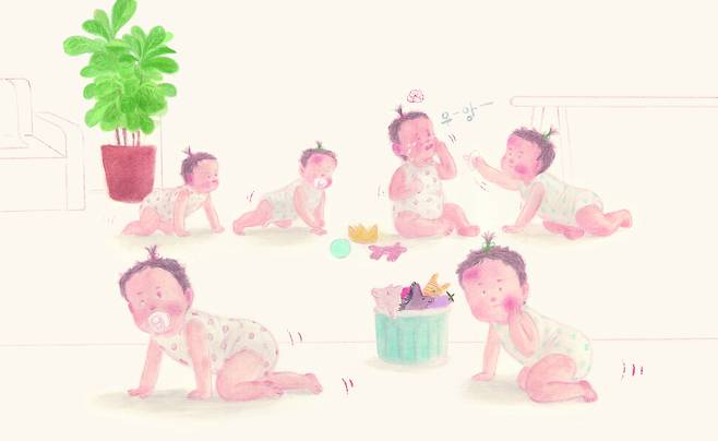 콧물범벅, 눈물범벅 그렇게 공갈 젖꼭지는 쌍둥이를 오간다.
