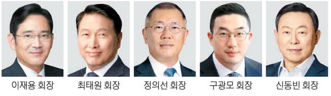 이번 간담회에는 이재용 삼성전자 회장을 비롯해 최태원 SK그룹 회장(대한상공회의소 회장), 정의선 현대차그룹 회장, 구광모 LG그룹 회장, 신동빈 롯데그룹 회장 등 5대 그룹 총수가 모두 참석한다