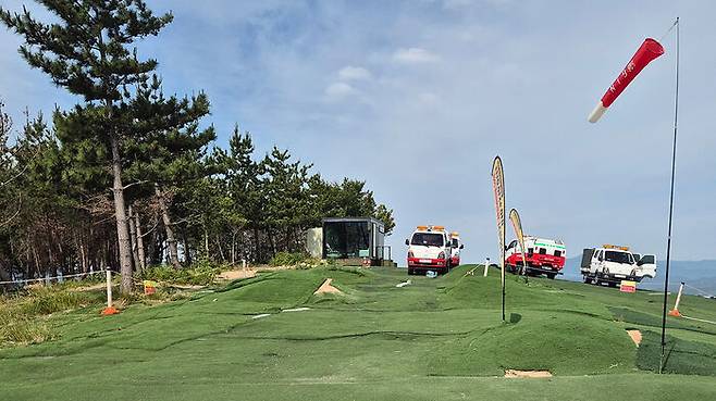 정상부의 패러글라이딩 활공장은 인조 잔디가 깔려 자칫 큰 불로 이어질 수 있었지만 번지지 않아 피해가 없었습니다.