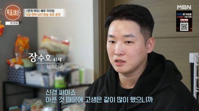 이의정은 12일 방송된 MBN '특종세상'을 통해 6년째 교제 중인 연하 남자친구 장수호 씨를 공개했다.