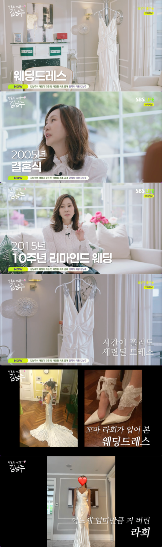 김남주는 "누구에게나 의미가 있는 웨딩드레스다. 아주 깨끗하게 잘 보관되어 있죠?"라고 언급했다.